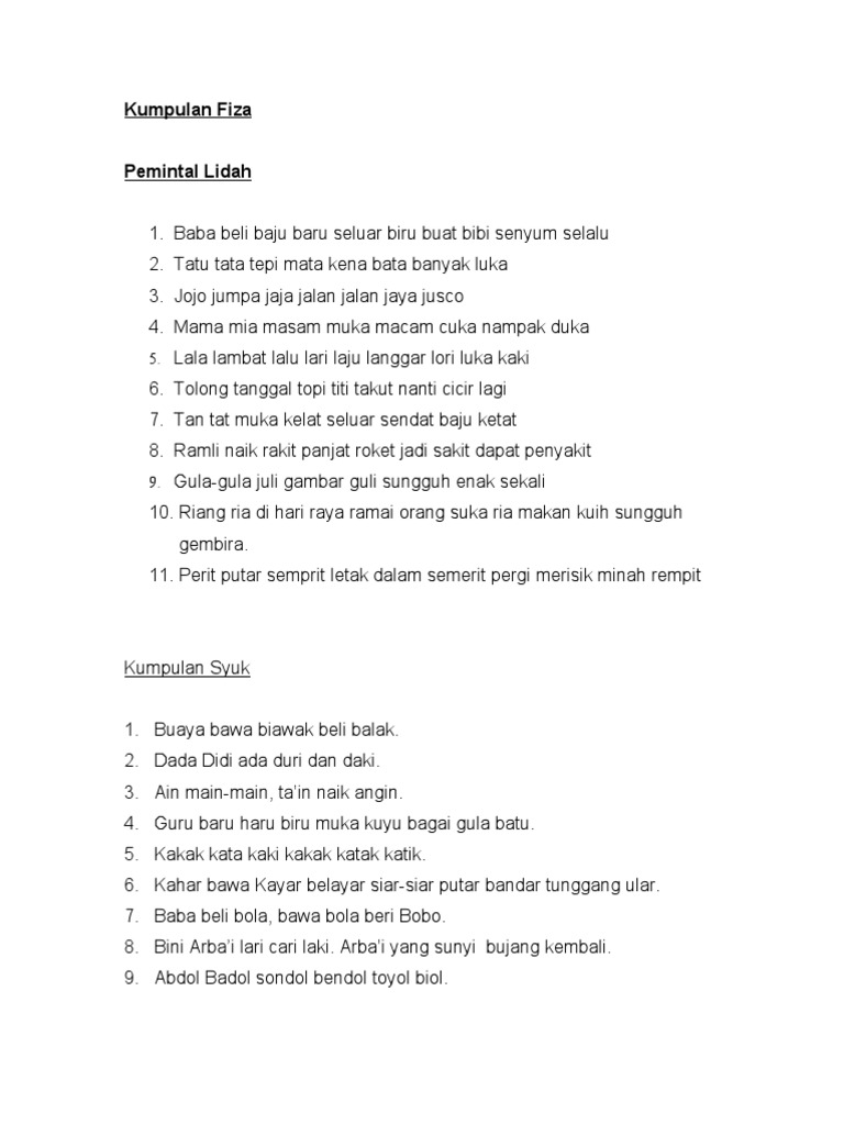 Contoh Ayat Pembelit Lidah Bahasa Melayu